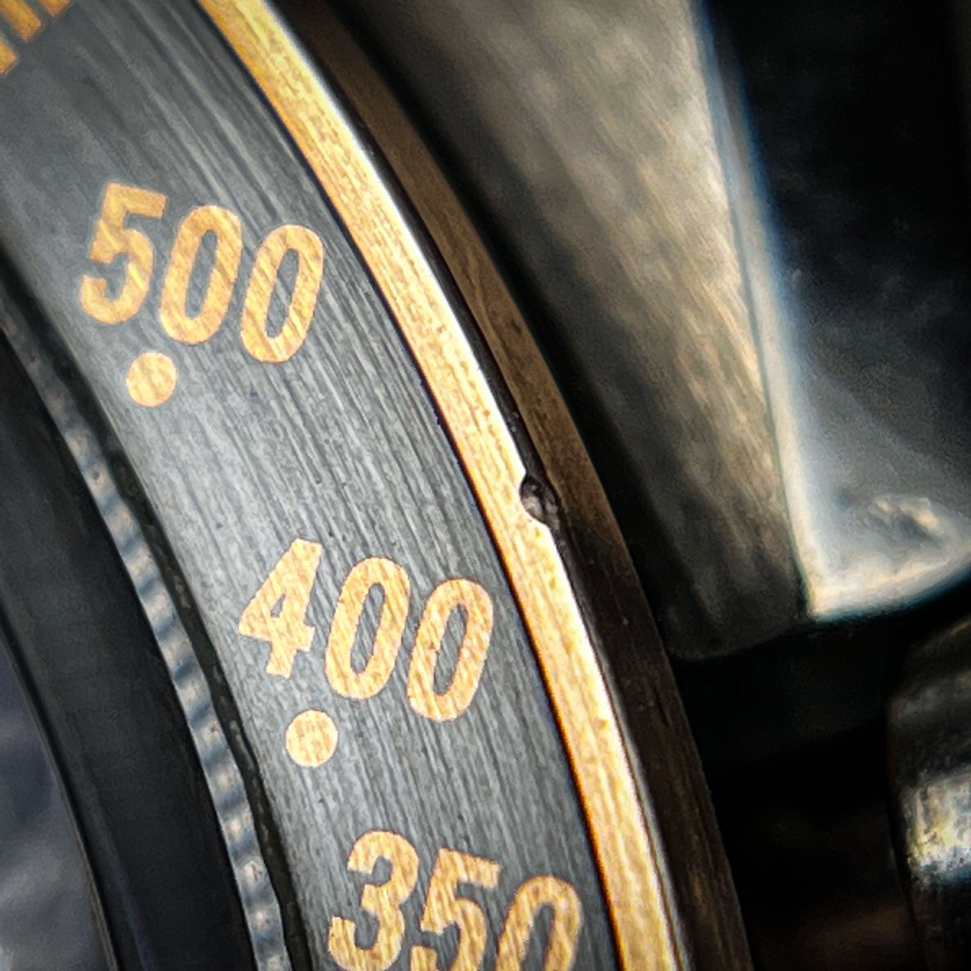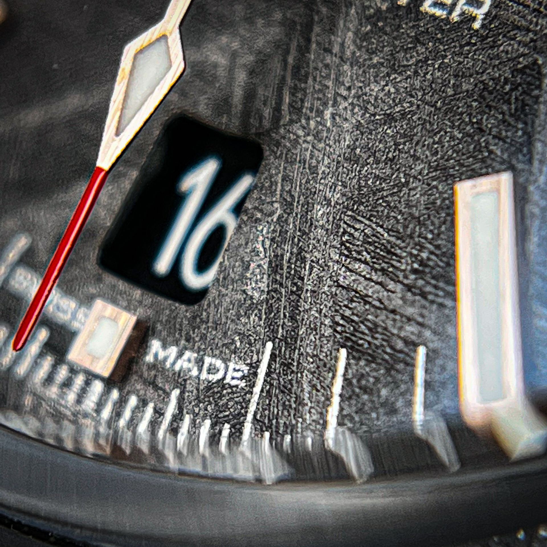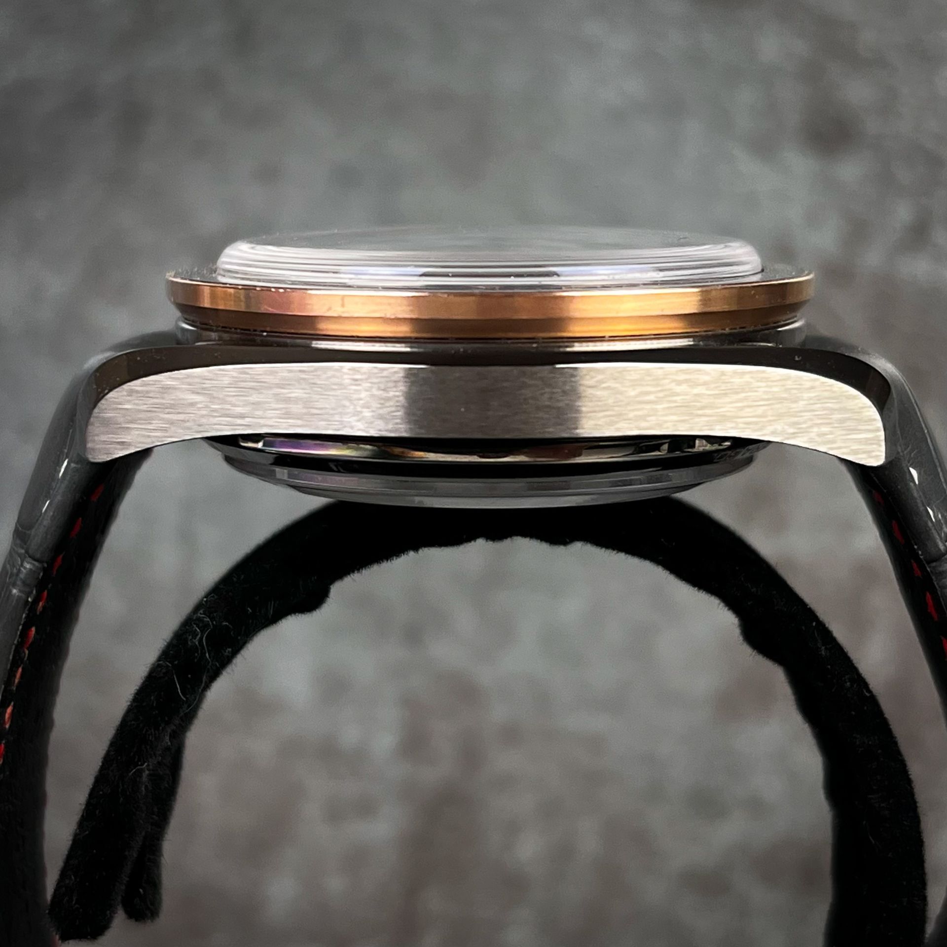 This particular example is in very good worn condition. The only flaws to note are 3 very minor flea bites on the bezel. The worst of which is near the 400 mark on the tachymetre scale and is highlighted with the macro lens photo. The case remains 100% scratch free thanks to its ceramic composition.