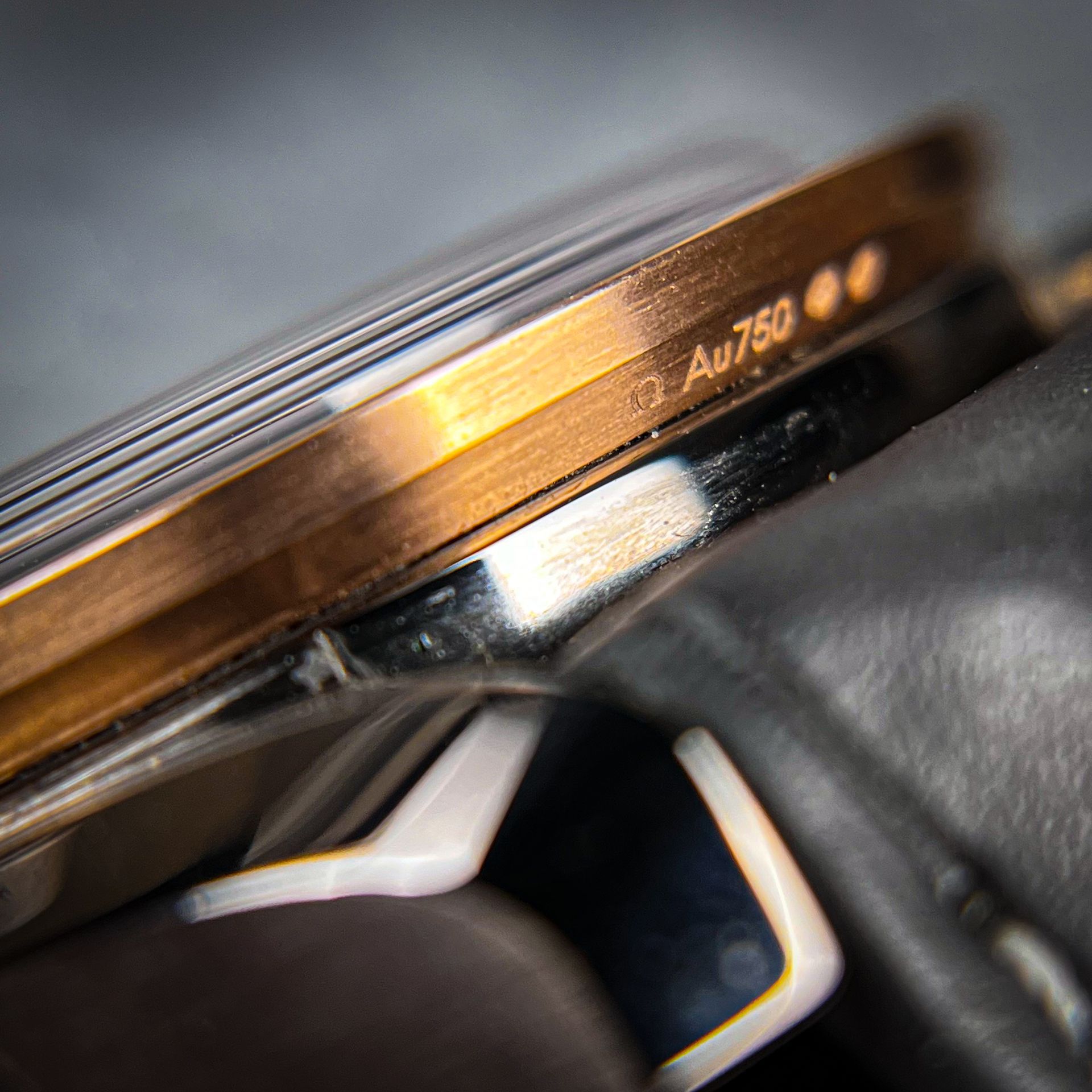 The combination of brushed and polished finishes on the case capture the light in stunning ways. The breathtaking meteorite dial is the star of the show. Omega has taken a piece of ancient stone and acid etched it to really bring out the pattern on the dial. This acid etching leaves a unique finish every time ensuring that your watch truly is a 1 of 1. The Sedna gold bezel, hands, and indices give this piece a dark, classy, luxurious presence.