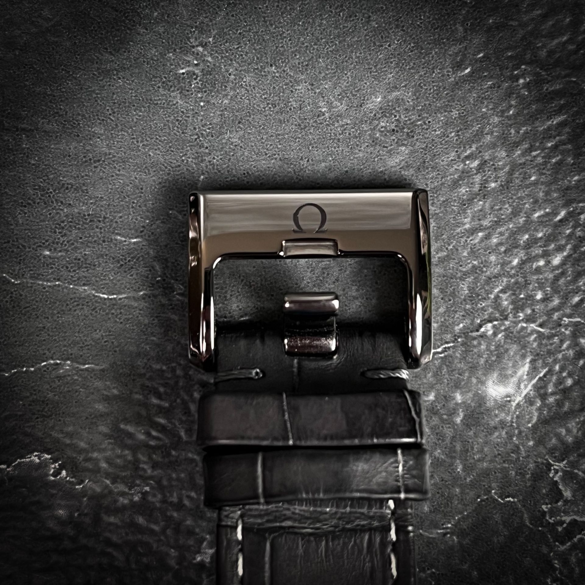 This gorgeous piece features a very special ceramic case. Omega heated the case to 20,000 degrees Celsius to achieve the brilliant luster that looks like steel. The benefits of ceramic are its lightness and its extreme resistance to scratching. The ceramic case ensures that this piece will look new in 30 years.