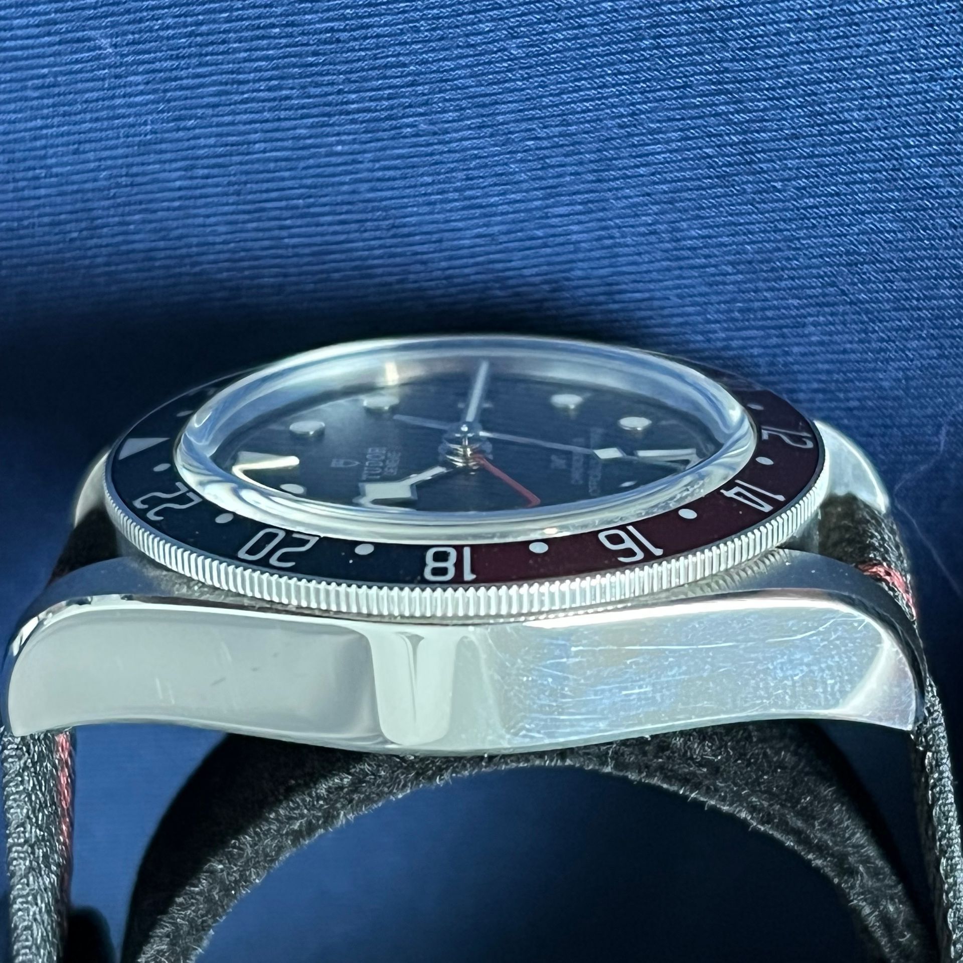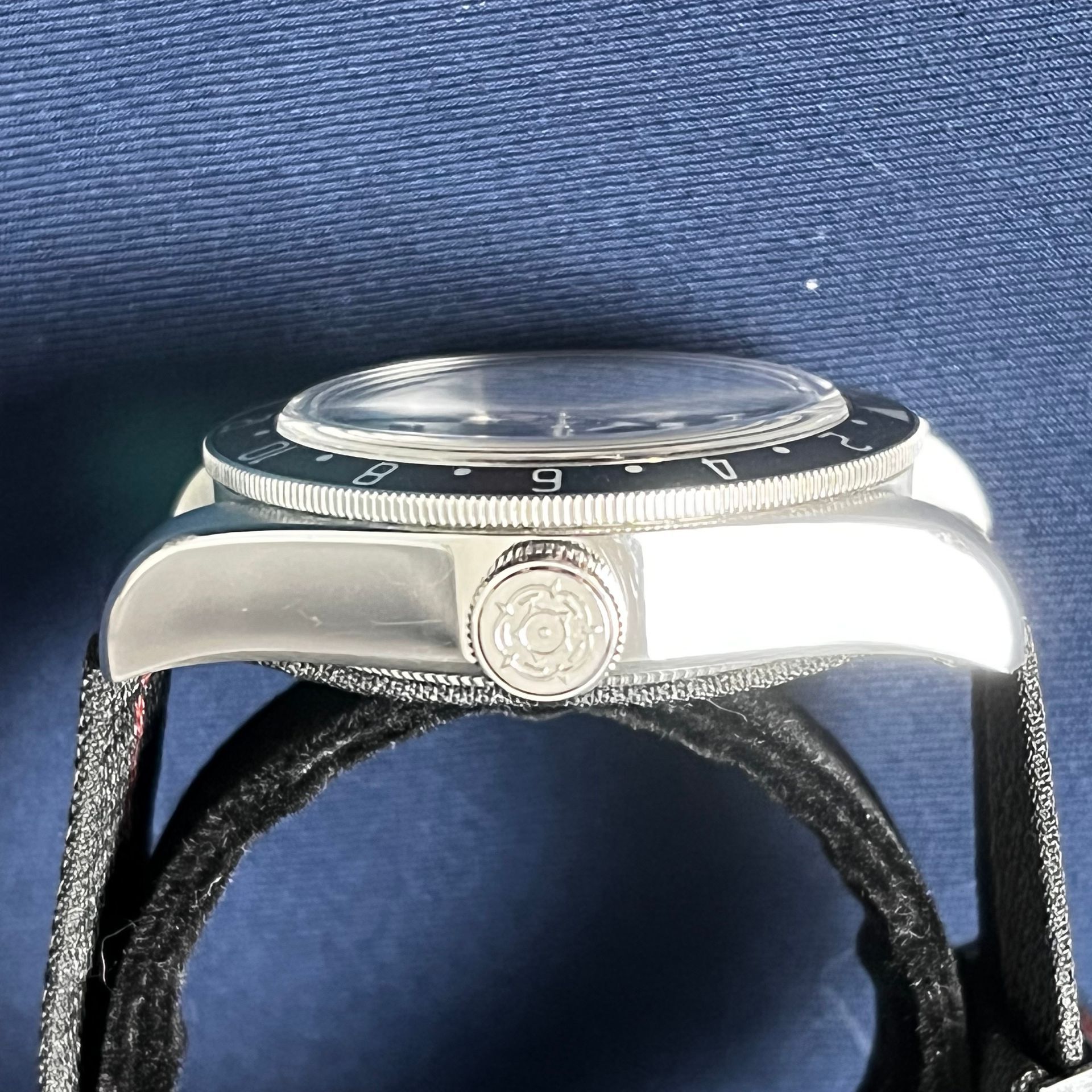 This GMT features the iconic "Pepsi" bezel. Perfect for the world traveler, this piece features a jump hour function making it a true GMT.