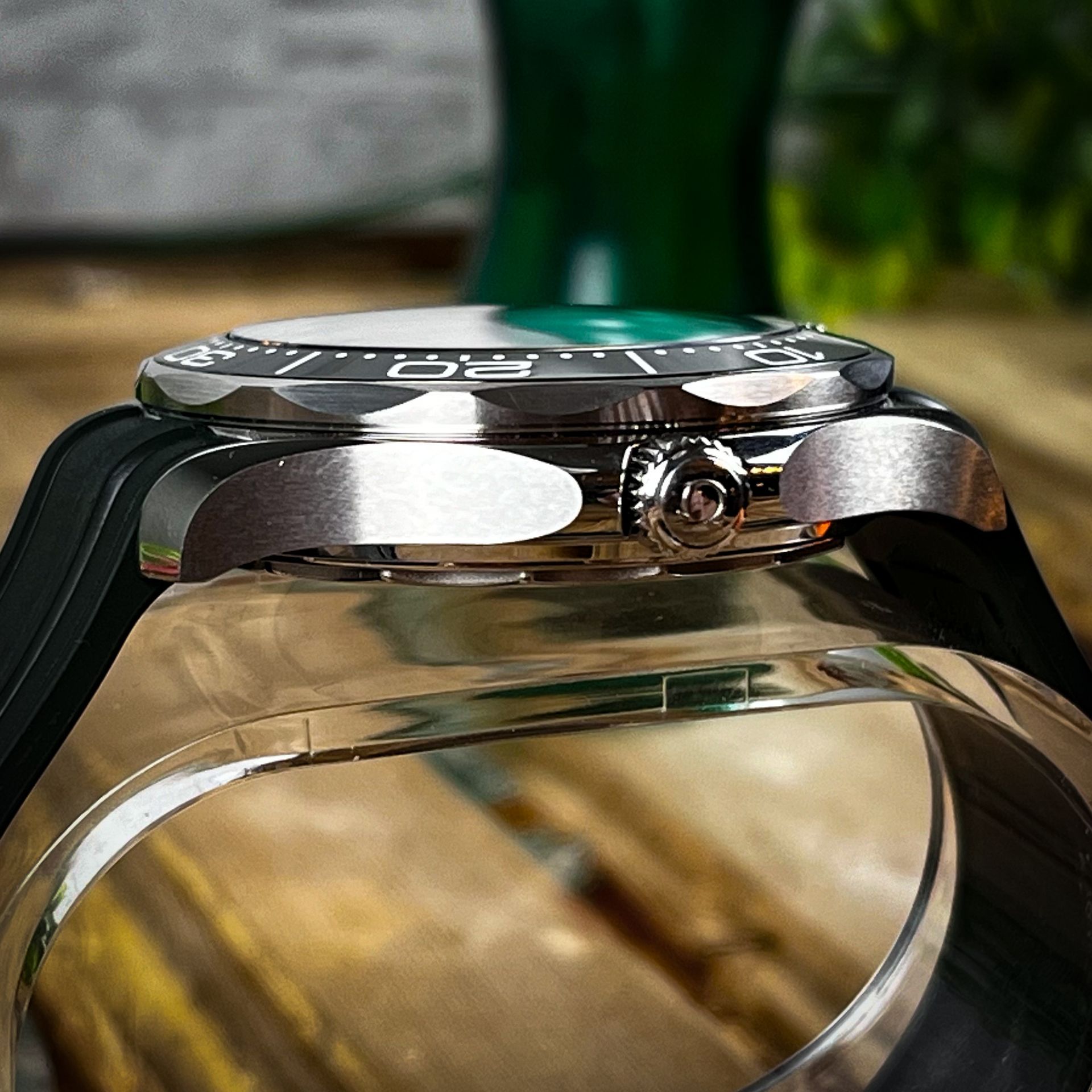 - Crystal: Domed scratch‑resistant sapphire crystal with anti‑reflective treatment on both sides