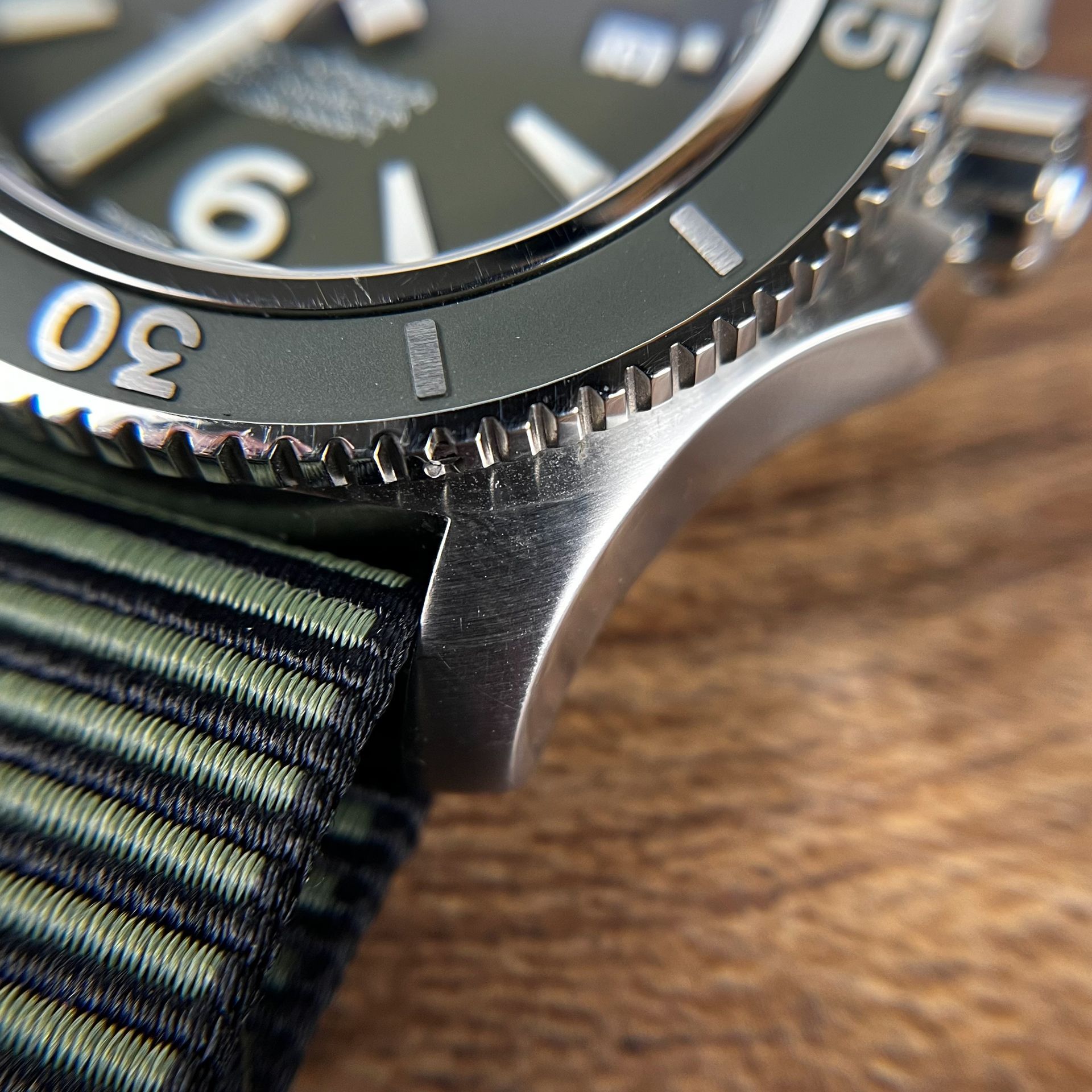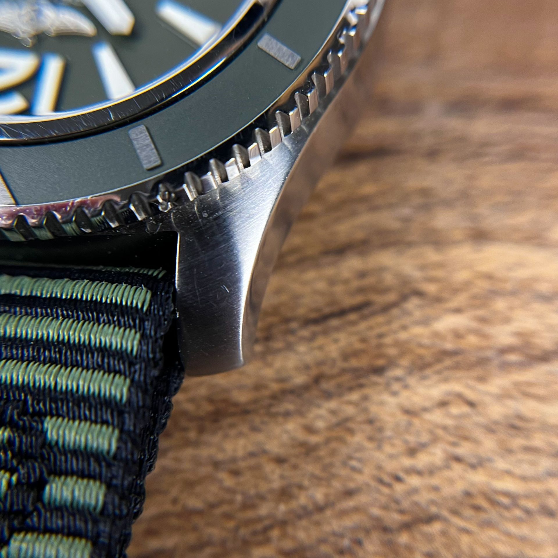 This model comes in at a very comfortable 44mm that is most at home on medium to large sized wrists. The matte green dial and bezel give an understated semblance of luxury, yet a ruggedness that makes this feel like the ultimate tool watch.