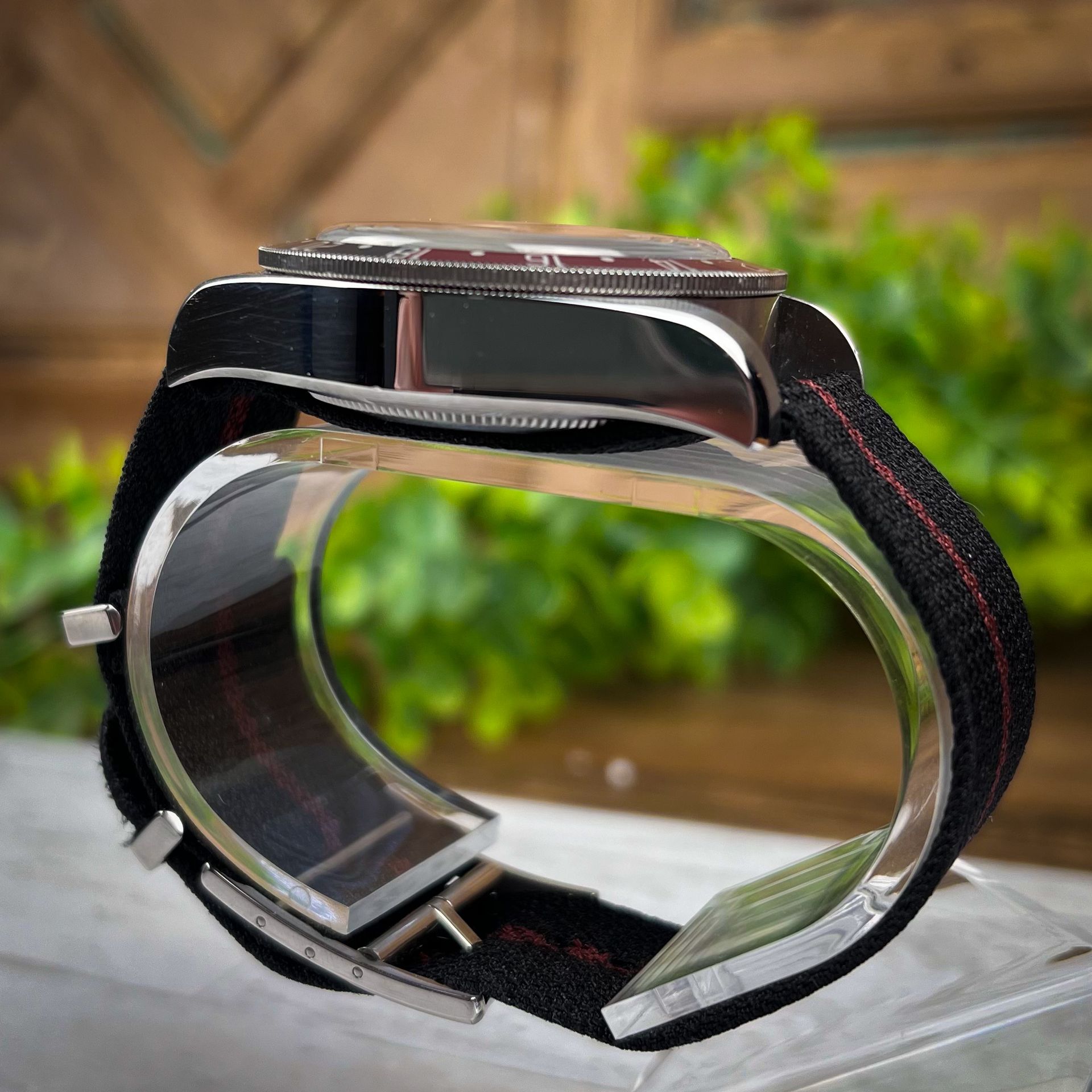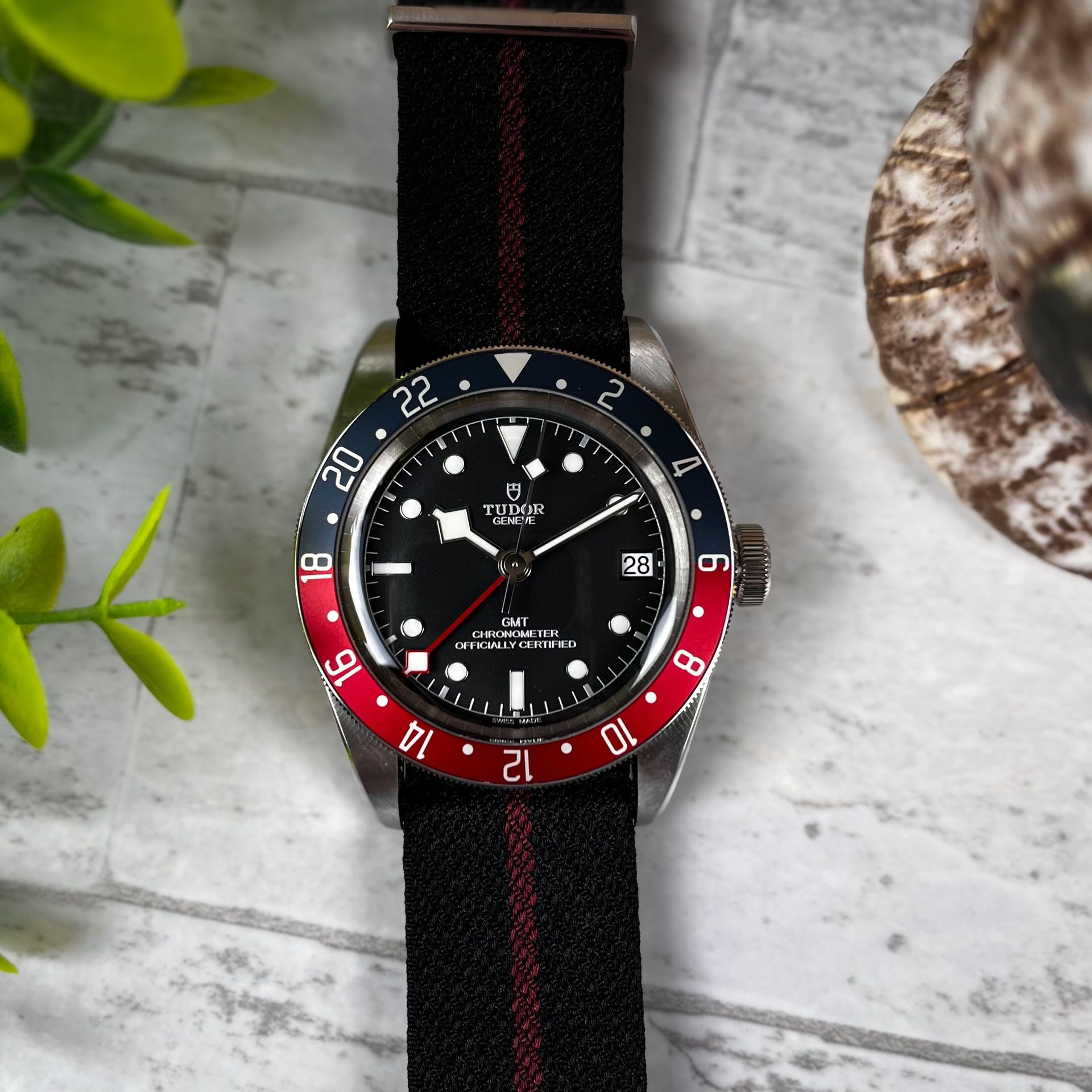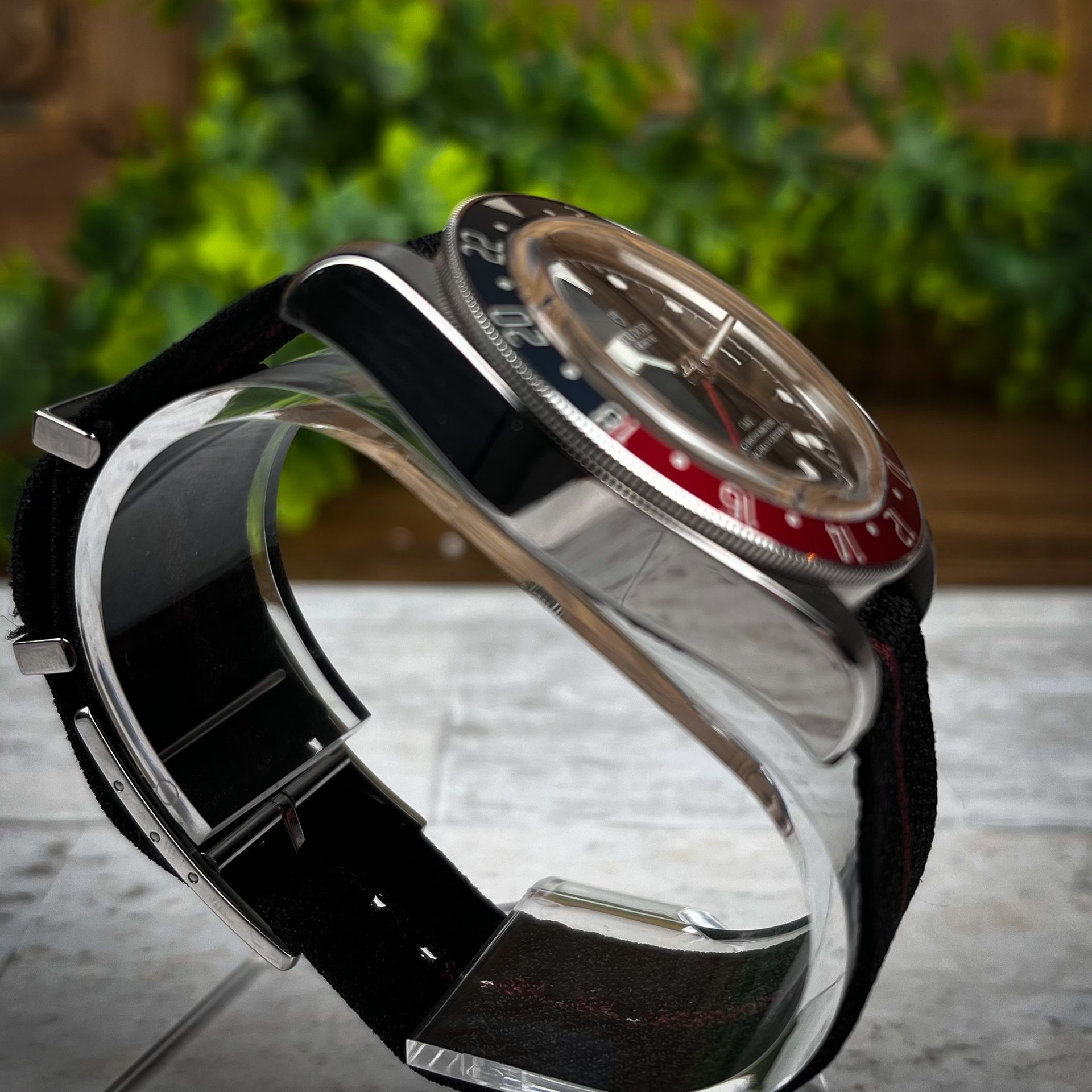 This GMT features the iconic "Pepsi" bezel. Perfect for the world traveler, this piece features a jump hour function making it a true GMT.