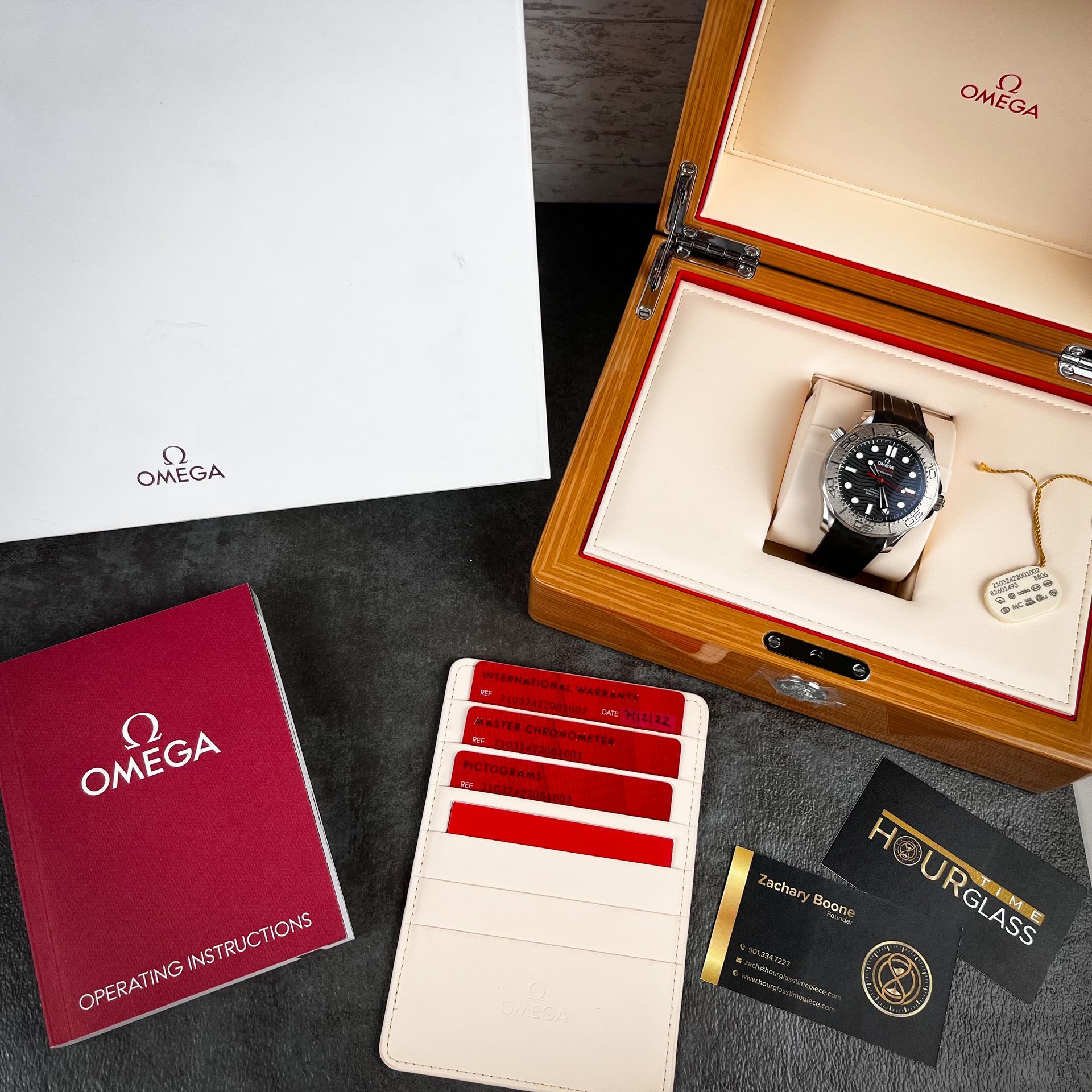This will come as a full set including inner and outer presentation boxes, manual, and all cards (pictograms, master chronometer, and warranty.) The warranty was initiated in 7/2022, so enjoy this piece worry free for nearly 4 years.