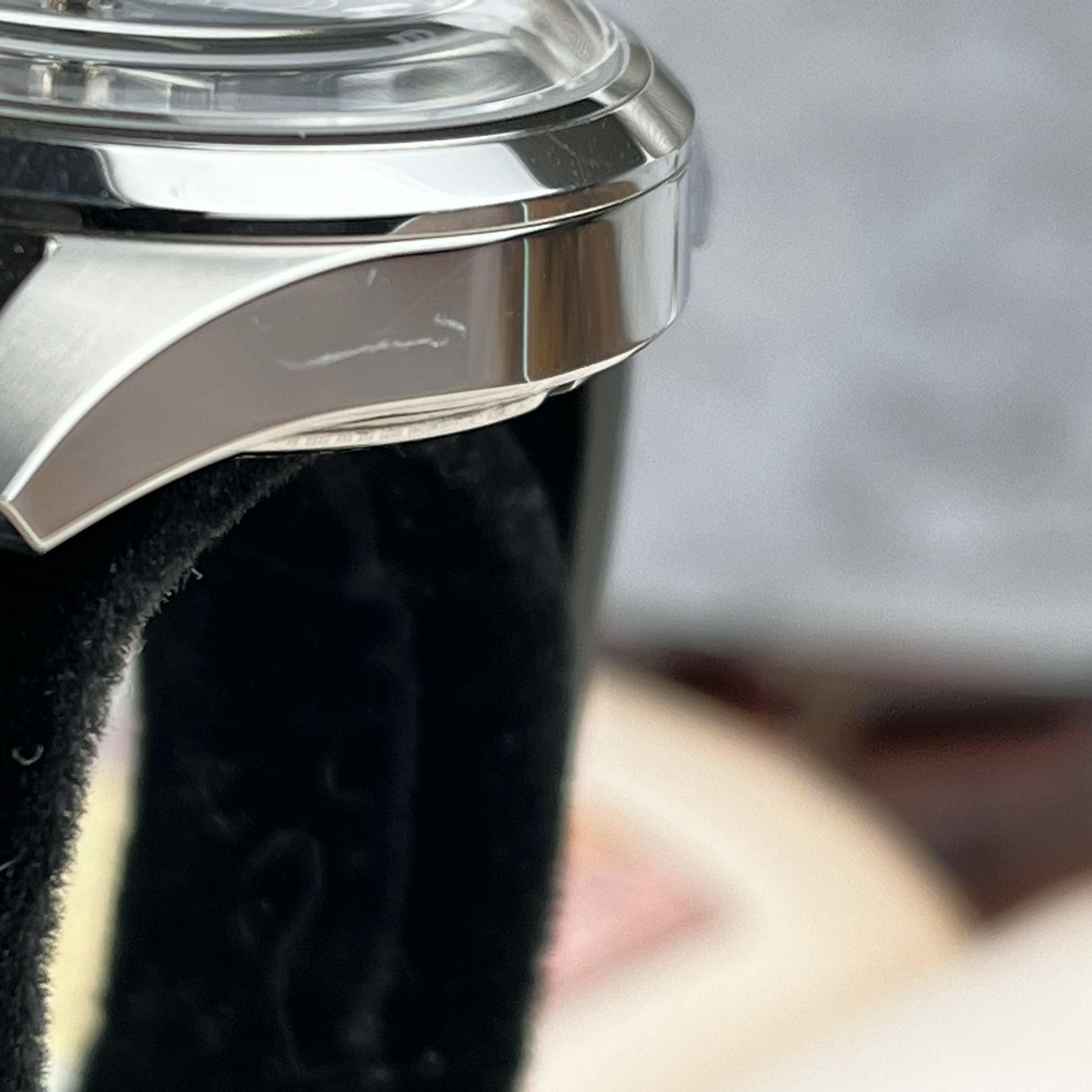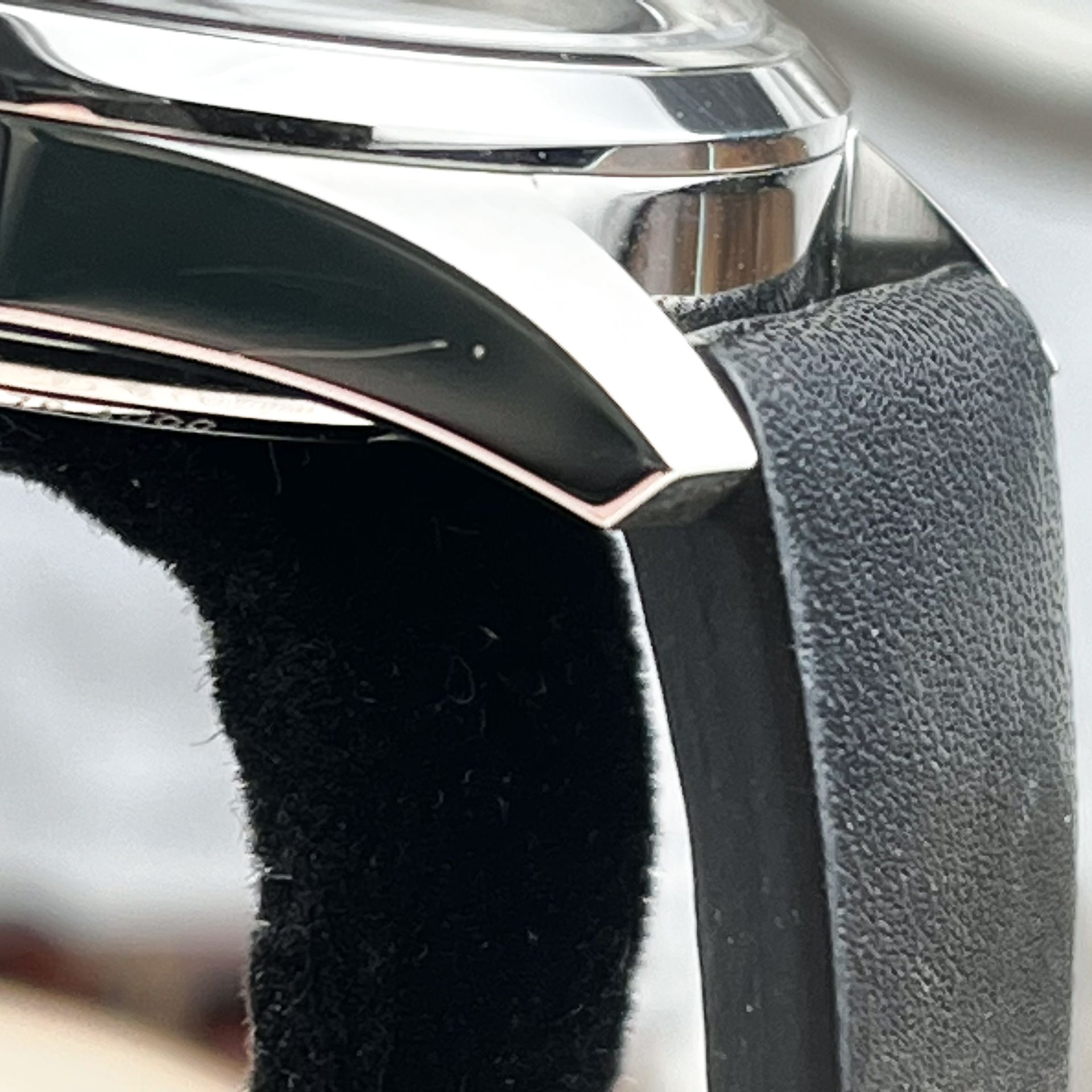 This piece is in excellent condition with only two minor scratches present on the sides of the case that are nearly undetectable unless viewing in certain light. (see photos) The strap shows zero signs of wear.