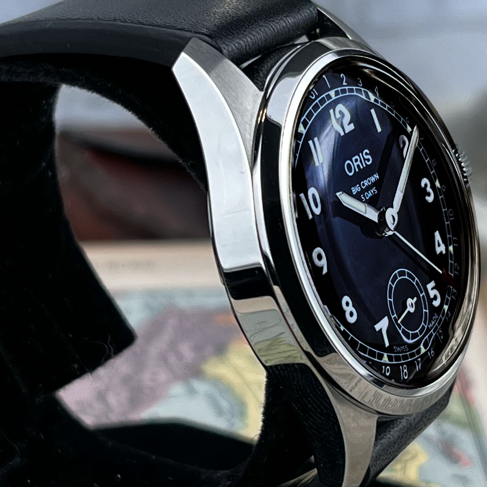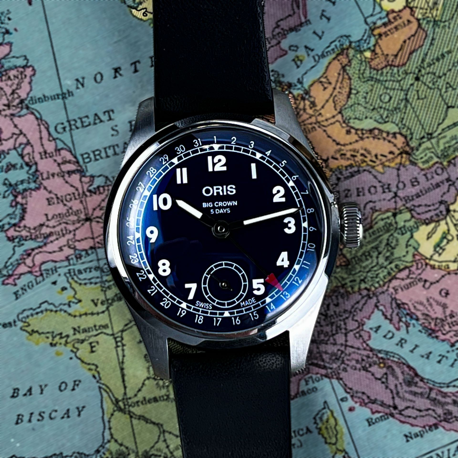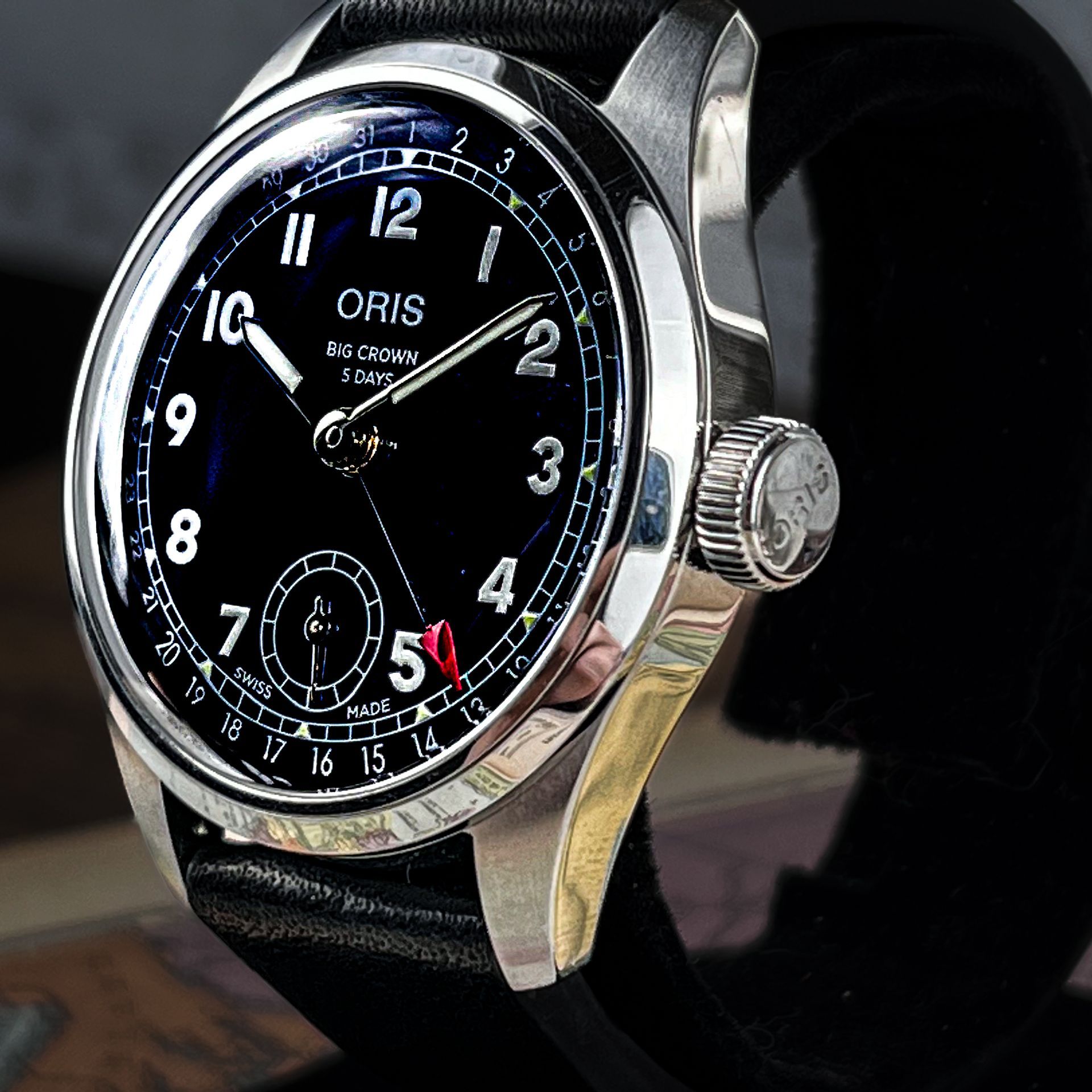 The Big Crown has been a staple in the ORIS collection for decades. At 38mm, this watch lends itself to a more vintage feel. The new and improved Pointer Date boasts ORIS's new in-house 403 calibre movement.